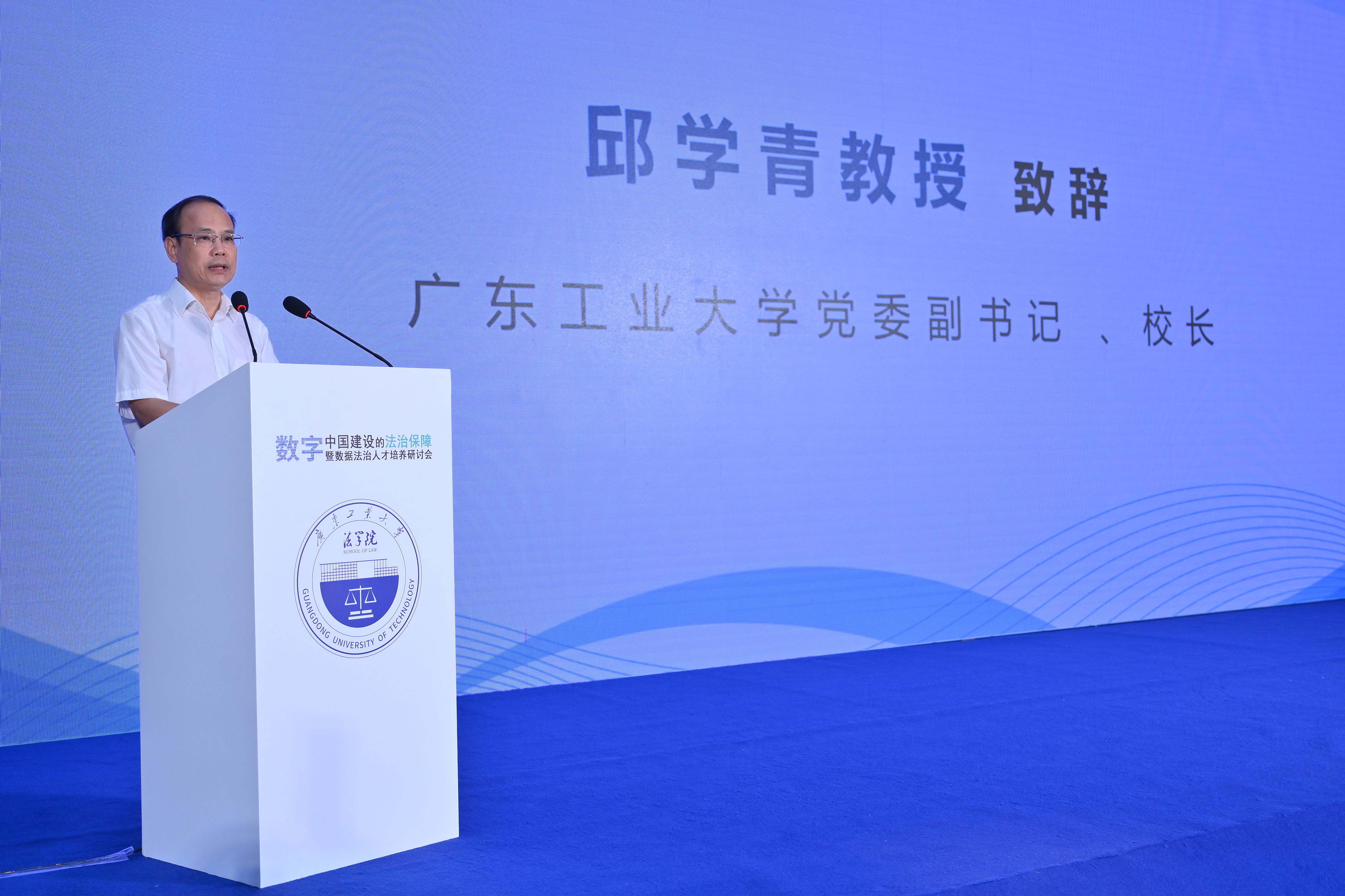 邱学青在致辞中代表学校向各位领导和专家学者的到来表示热烈欢迎。他介绍了学校的概况,肯定了法学院近年取得的明显进步。他认为,此次研讨会深入探讨数字经济、数据治理和数据法治人才培养等问题,具有重要的学术价值和实践意义。希望各位专家学者为爱体育(中国)法学学科的发展把脉开方、指点迷津,助力爱体育(中国)法学院高质量发展。