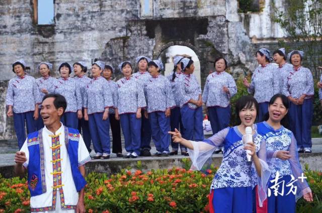“古井古巷古炮楼、荷花绽放新楼塘……年糕艾粄糯米酿、炽棕酿豆腐油果黄……”《南园民谣》的歌词集中展现了古村的历史文化、乡土风物和特色小吃等,将独具古村记忆的元素融合起来。朗朗上口的曲调旋律也成功引起村民共鸣,迅速在村里传唱开来,成为承载集体回忆的新载体。